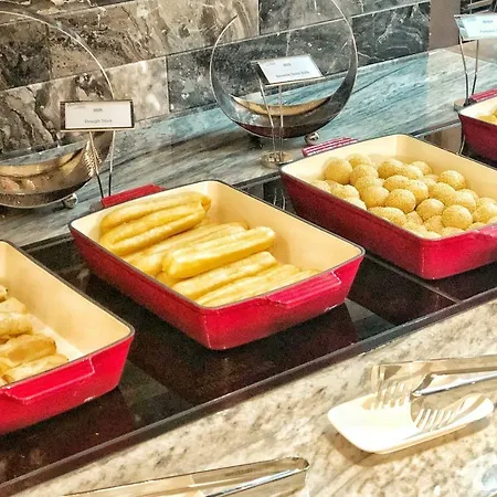 The luxury Radisson Hangzhou Qianjiang serves a buffet breakfast in the morning. Guests can quench their thirst in the lounge bar with their favourite drink.